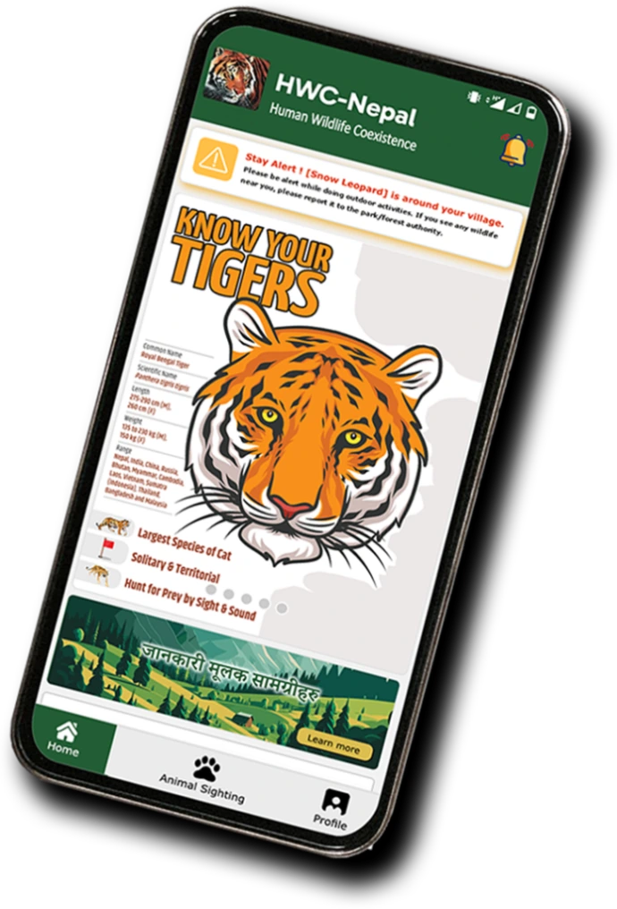 ntroducing the HWC (Human Wildlife Coexistence) Nepal App, your guide for human-wildlife coexistence solutions. Learn about mitigation measures for human wildlife conflict through the infographics and documents available in the app.